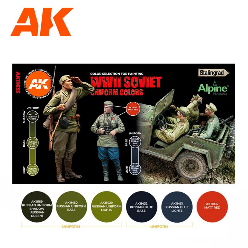 Questo set di terza generazione include una selezione di toni per dipingere figure con le uniformi dell'esercito sovietico della Seconda Guerra Mondiale.