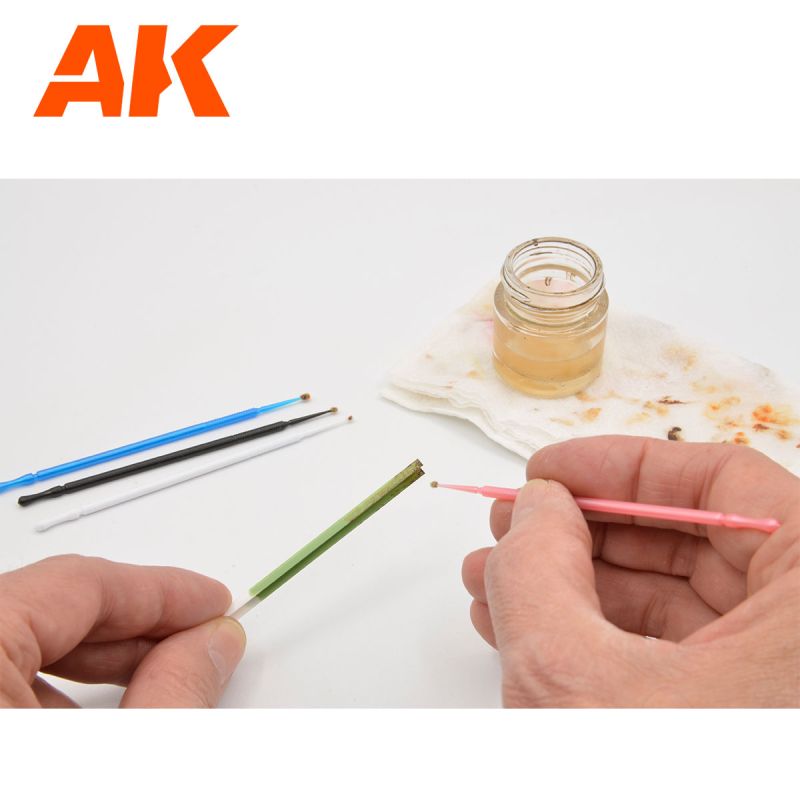 Grazie alle loro dimensioni e flessibilità, sono adatti anche per la pulizia dell'aerografo o di qualsiasi altro strumento che necessiti di un pennello flessibile e preciso per la sua manutenzione.